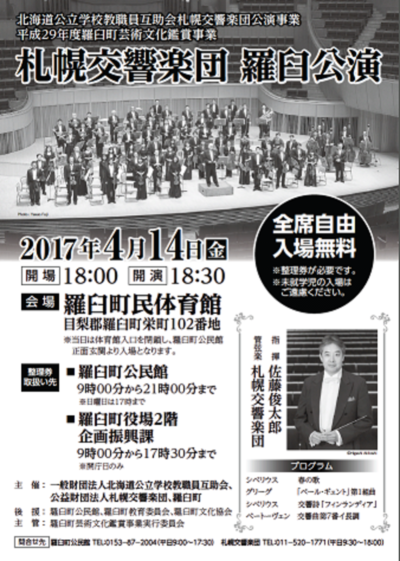 主催:北海道公立学校教職員互助会、羅臼町、札幌交響楽団