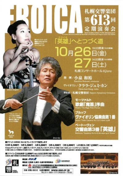 モーツァルト/歌劇「魔笛」序曲、ブルッフ/ヴァイオリン協奏曲 第1番 ト短調、ベートーヴェン/交響曲 第3番 変ホ長調 「英雄」